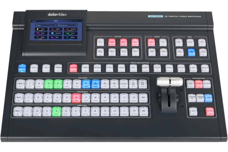 功能:Datavideo SE-4000是全媒体混合导播时代下应运而生的 广电级4K全功能切换台,它支持8路4K50/60P或12路4K29/30P输入,纯硬件架构保障高稳定性。配备12G-SDI和HDMI 2.0接口,无缝整合多种信号,传输稳定高效。